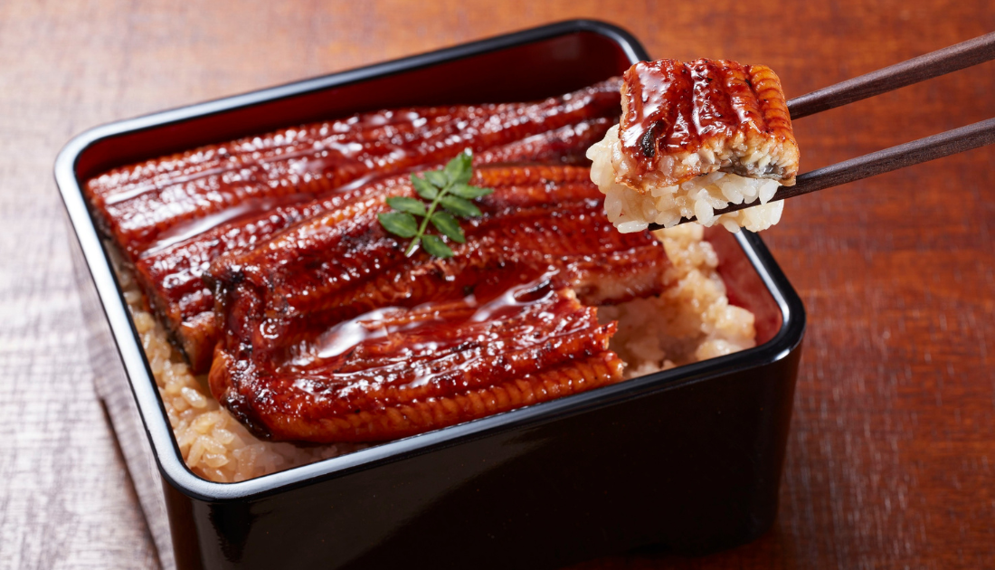 Unagi, or freshwater eel, is glazed with a sweet soy-based sauce and grilled until smoky and tender. Served over rice, it’s a luxurious dish traditionally eaten in summer to restore energy and beat the heat.
